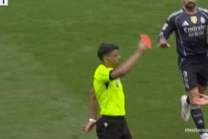 体育资讯09月13日讯 西甲第4轮,皇家马德里vs皇家社会。上半场比赛中,皇马后卫赫伊森犯规破坏皇家社会反击,被主裁曼萨诺直红罚下,而这也不是曼萨诺与皇马之间的第一次故事。